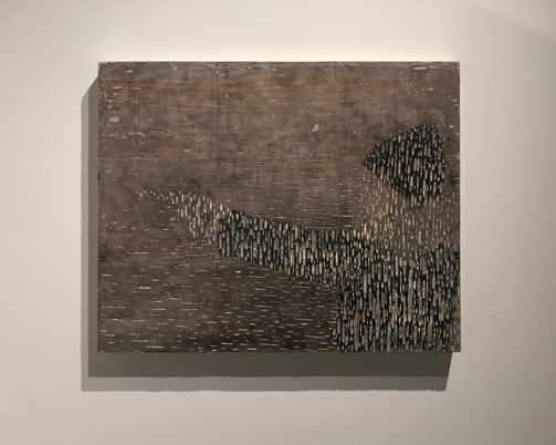 30" x 24"Acrylic, charcoal, and replicated film photo on wood panel2018